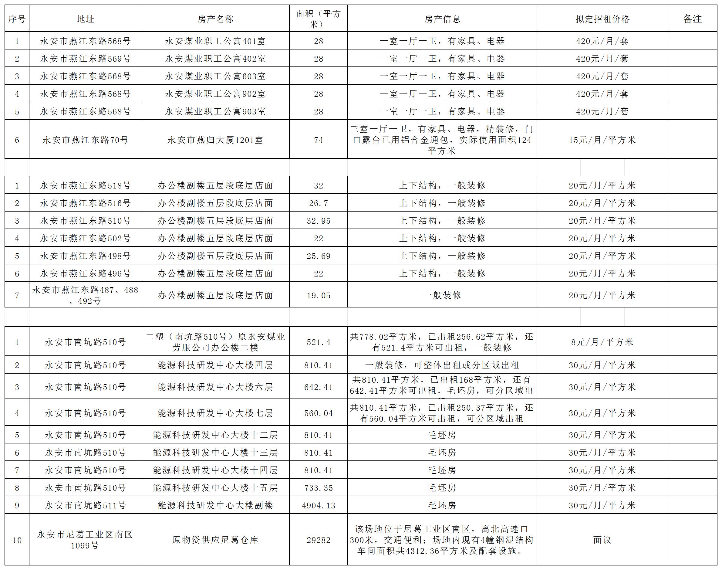 受委托,我司拟于近期公开拍卖永安煤业空置经营性资产租赁权。现面向社会公开征集意向竞买人,价格可谈!有意竞拍者请与我司联系。展示地点:标的所在地报名、咨询地址:永安市建融花园1幢2层联系电话:0598-3717987 小郭福建嘉华拍卖有限公司2025年9月24日