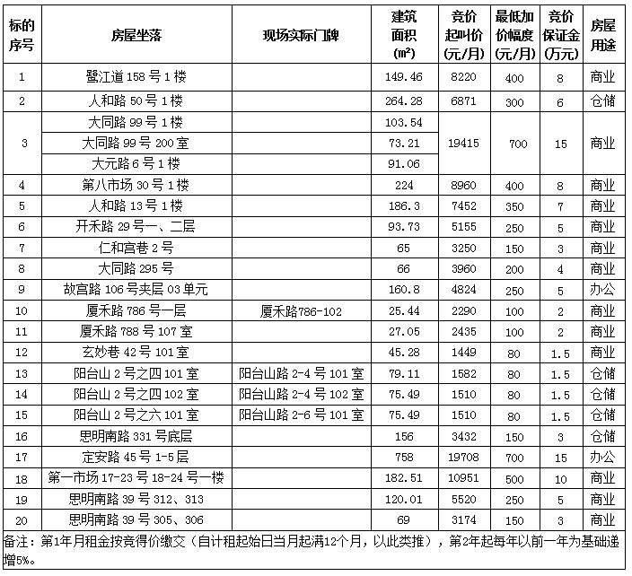 受委托,我司定于2022年9月5日上午9:30在公共资源交易平台(网址:http://117.25.161.110:8082/ggzyscpz/)公开拍卖:2022年第三批22处市直管公房非住宅;具体资格条件详见厦门市公共资源交易网(http://www.xmzyjy.cn/)。