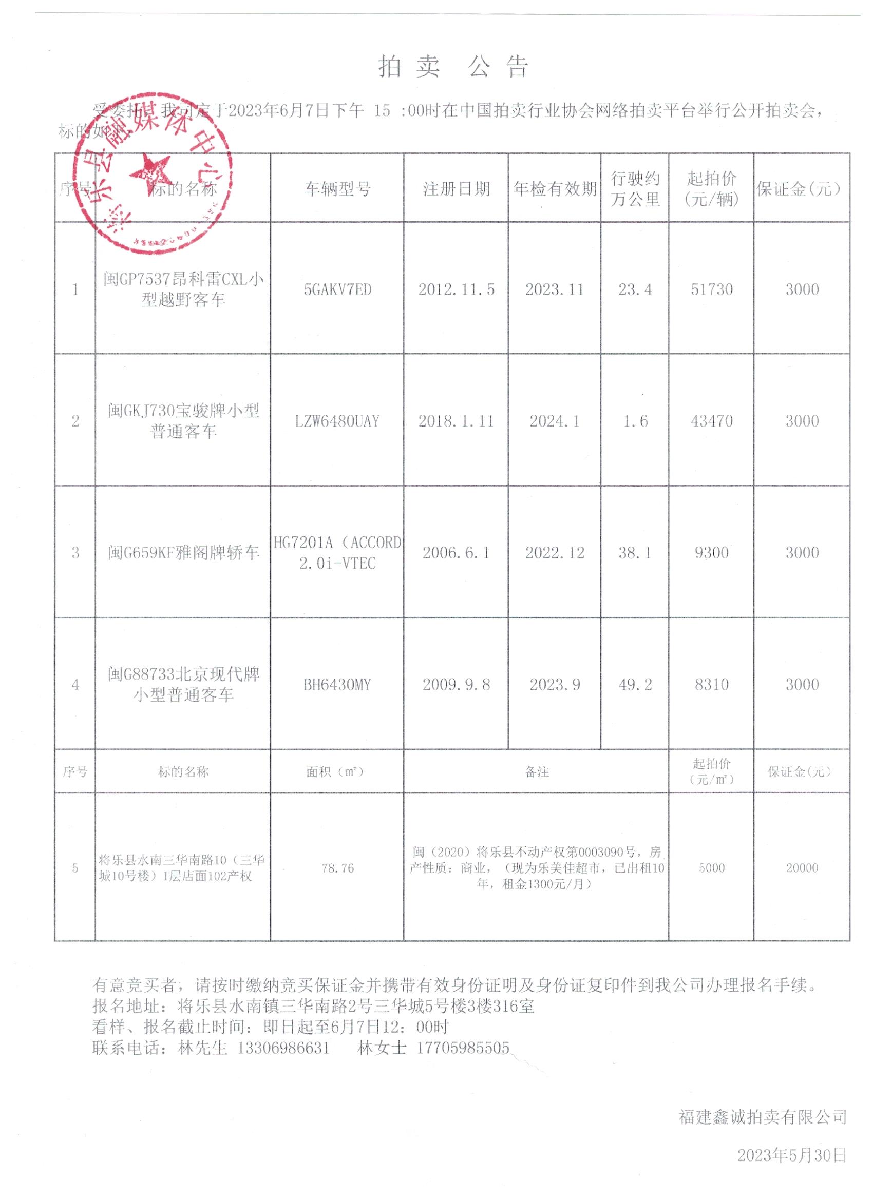 晨至信第2026024期拍卖公告