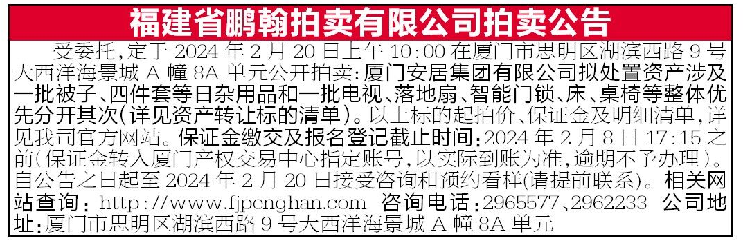 【厦门特拍】2026年第十五期拍卖公告