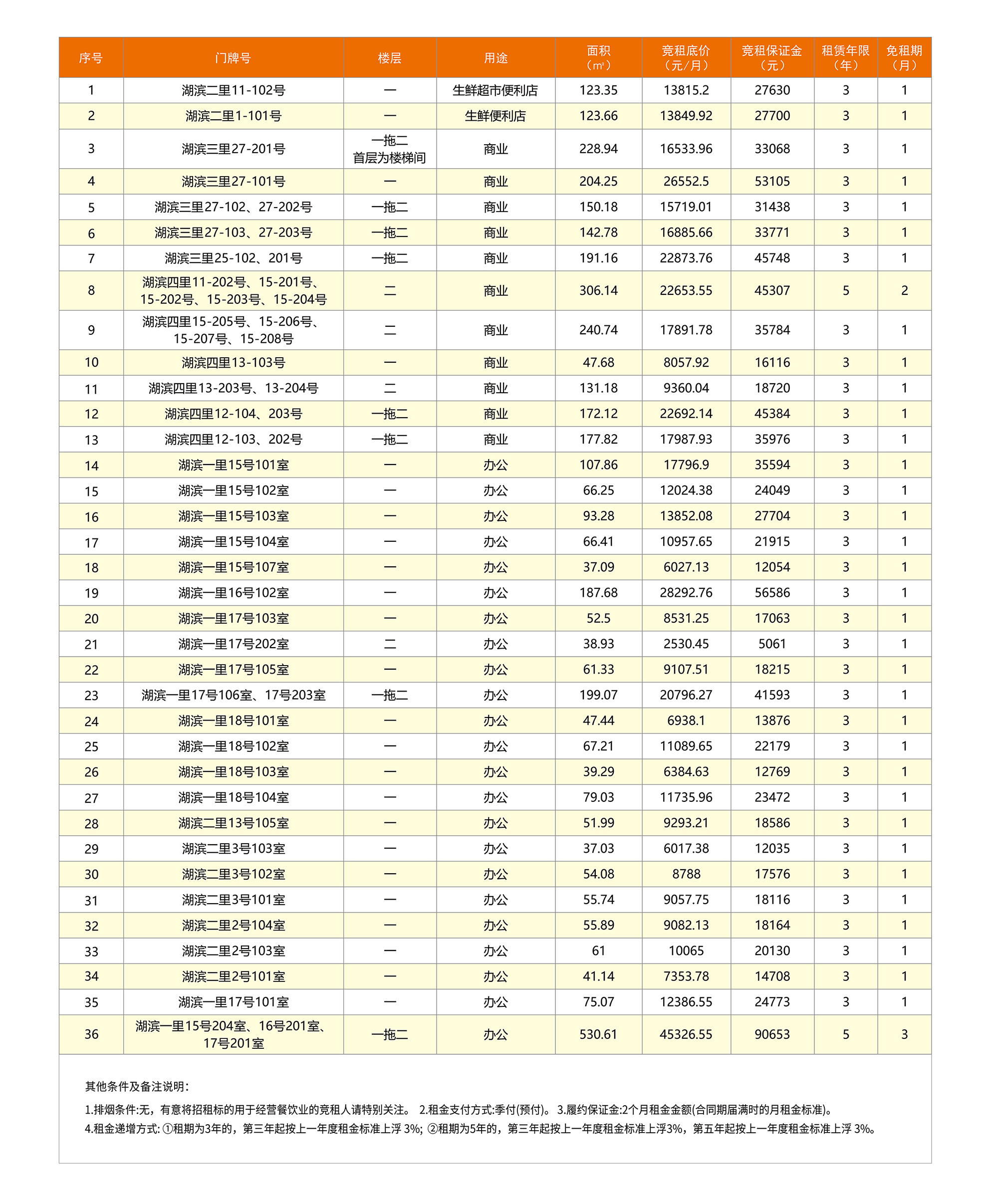 【返迁业主优先权】根据筼筜街道《关于商请协助做好湖滨项目剩余安置资产后续运营处置衔接意见的函》,在招租过程中明确在同等条件下,优先保障原有业主享有优先承租权(具体以街道提供名单为准)。