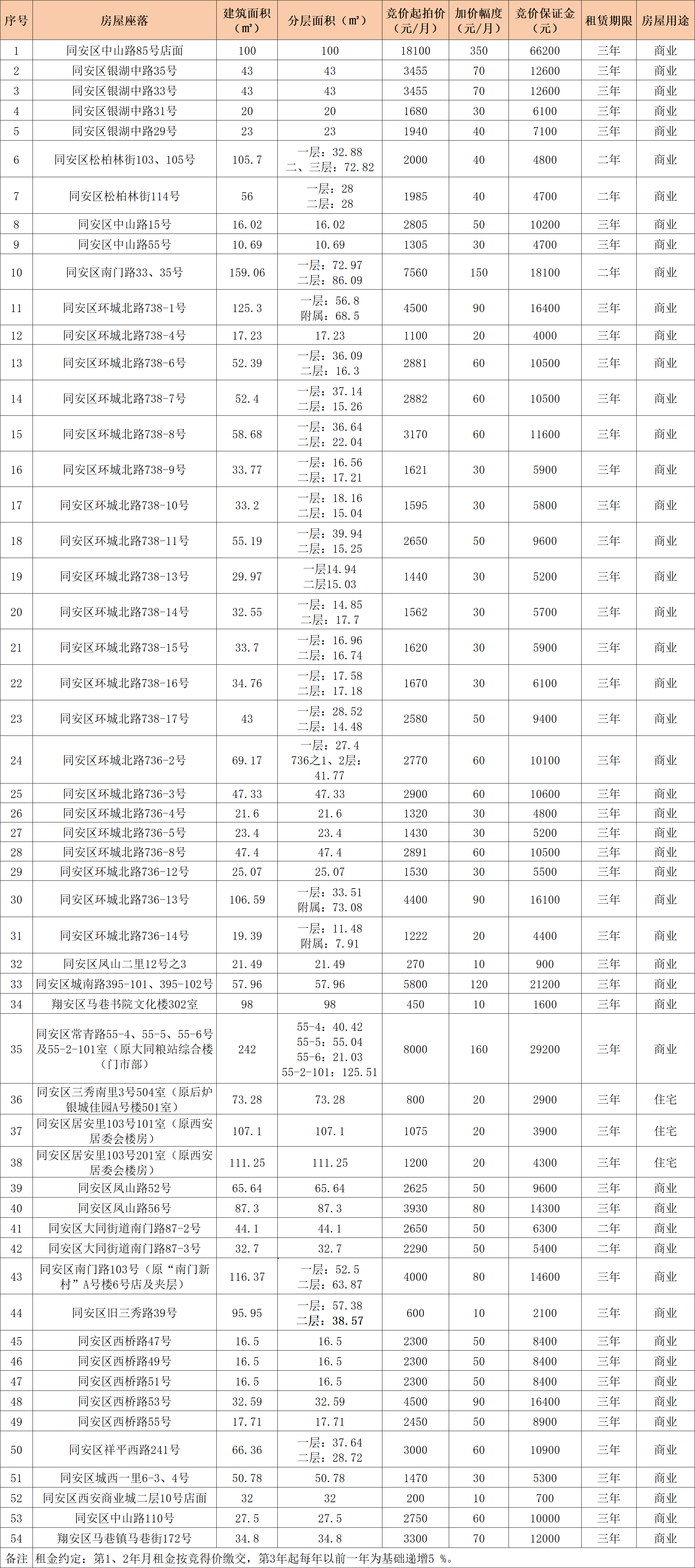 同安城投公司代管54宗房产2-3年租赁权招租竞价公告